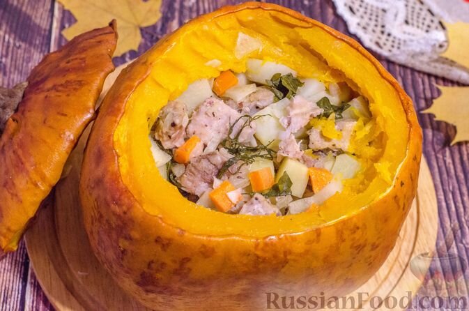 Мясо с картофелем, запечённое в тыкве. Песочное печенье "Тыковки". Тушёная тыква с фасолью. Селёдка под шубой с тыквой. Куриная печень с тыквой и яблоками. Песочное печенье "Тыковки" порадует и прекрасным вкусом, и забавным видом. Печенье в виде тыковок несложно сделать с помощью ножа и бутона сушёной гвоздики. Тесто простое, но необычное – на основе тыквенного пюре и варёных желтков. Печенья-тыковки можно использовать для осенних детских утренников и не только. Тушёная тыква с консервированной фасолью – простое, но очень вкусное и сытное блюдо из доступных продуктов. Сладковатая тыква отлично сочетается с луком и фасолью. Кориандр, паприка и зира придают блюду бесподобный пряный аромат, а томатная паста – яркий насыщенный вкус и цвет. Салат "Сельдь под шубой" с тыквой – интересный вариант популярного салата. Если вместо моркови в салат добавить отварную тыкву, вкус его станет более оригинальным. Слой репчатого лука можно сбрызнуть оливковым маслом и бальзамическим уксусом, что также