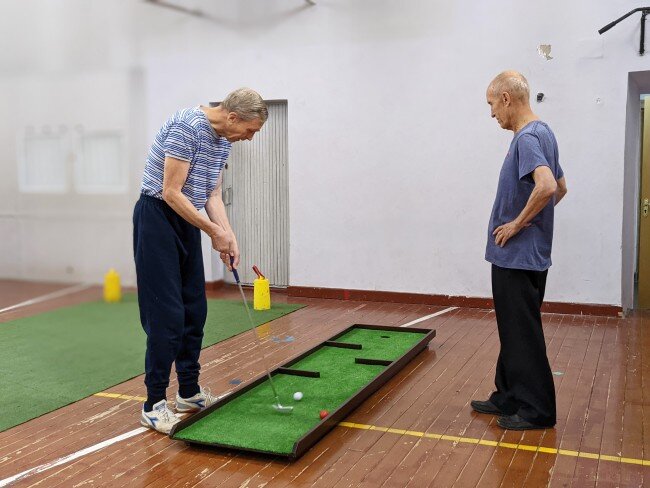 Клюшка, мяч и бочка. Участники «Московского долголетия» играют в гольф в формате SNAG