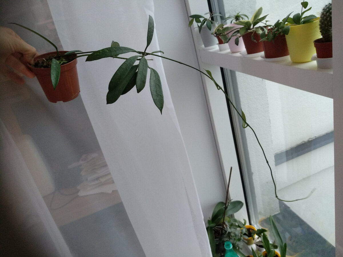 Продолжу перечисление своих хойй. Прошлый раз показала первые 10, закончила на Panchoi. 11. Griffitii. Привезла из магазина излишков в ботаническом саду. Продолжает гнать "ветку", никакой адаптации. 12. Obovata 13. Carnosa. Та самая, которая "везде со шкафа свисает". 14. Kerry. Хойка-валентинка. Нарезала пару черенков. Кстати, листик в горшочке у меня тоже есть, в лучших традициях гипермаркетов. Собственноручно сделанный. Как-нибудь покажу. Это были жители окна в спальне. Теперь свежие и почти свежие приобретенния. А стеллаж позже (вспомнилось: "...А к практике мы перейдем потом. Опосля, значит...". Знаете откуда?) 15. Sigillatis. Свежекупленная, практически. На фото еще не пересаженная даже. 16. Imbricata. Вот с этим чудом если мне удастся справиться, я буду собой гордиться. Пока она пошла в рост и я этому невероятно рада. Живет в такой вот имитации флора 17. Bella variegata. От азиатского садовника у меня только она. Остальные черенки неизвестно от кого или "голландцы". 18. Bella 1