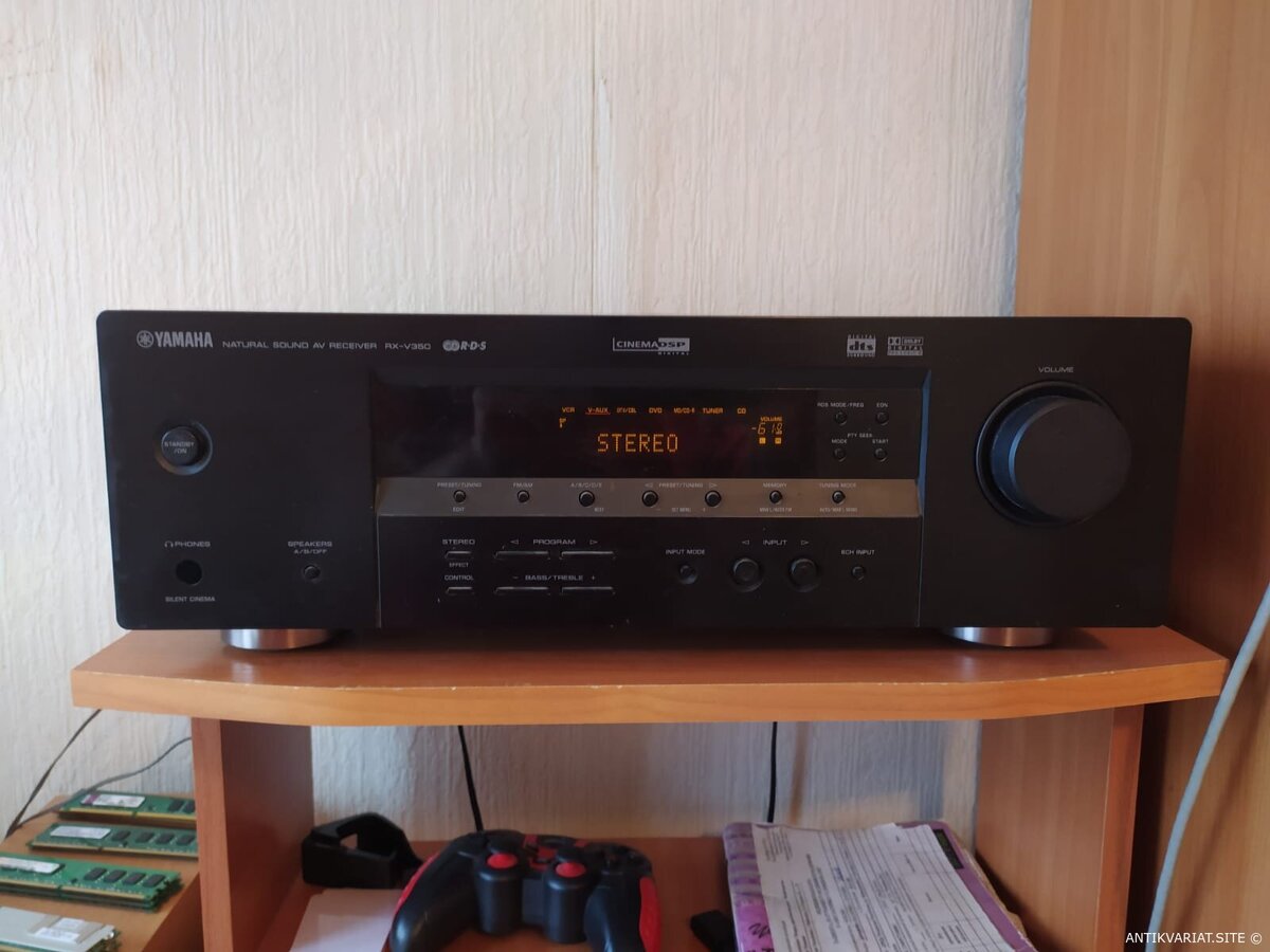Ресивер Yamaha RX–V350RDS Более месяца назад мне в руки попался этот японец. Купил я его довольно-таки дешево, всего лишь за какие-то 3к, бонусом достались самсунговские трехполоски с гнилыми подвесами, но корпус практически люксовый. Ну сейчас не об этом. Усилитель… Давайте для начала пройдем по характеристикам… Декодер многоканального звука:DD, DD EX Matrix, DTS, DTS-ES Matrix, DPL, DPL II Технические характеристики Ресивера Yamaha RX–V350RDS: Аудиораздел: Минимальное электрическое напряжение RMS для