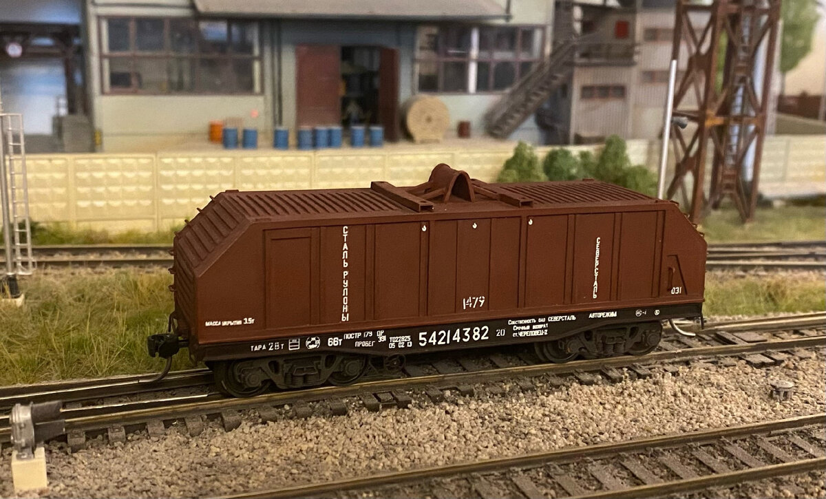 13-4094 для перевозки стали. Готов, стоит на полке. В целом самая удачная модель из списка, собрана первой из партии китов. Из минусов - укрытие для рулонов пришлось сделать несъёмным в связи с особенностями отливки. На этапе сборки пришлось приклеить и прочно зафиксировать. В остальном все ок. Киту пятерка с минусом. Минус за несъемное укрытие. В целом могу рекомендовать.
