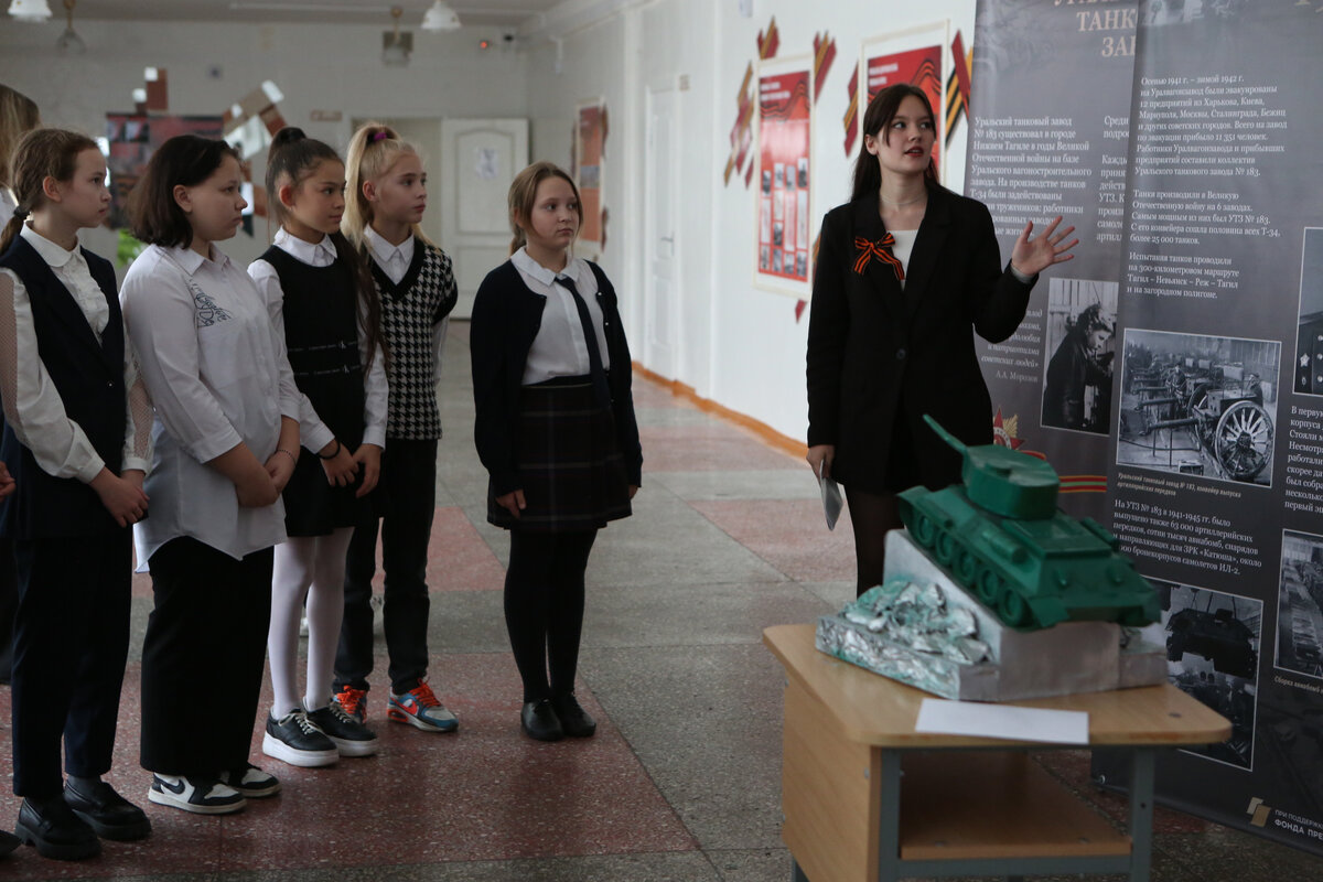 Передвижная выставка «Уральский танковый завод № 183» начала путешествие по школам Нижнего Тагила. Экспозиция выполнена при поддержке Фонда президентских грантов в рамках реализации проекта «Моя история в Книге Памяти: у станка – как на фронте». В роли экскурсоводов выступают школьники. Корреспонденты газеты «Машиностроитель» побывали на выставке в лицее № 39. Уверенно начала свое выступление о становлении Уральского танкового завода № 183 Таисия Иванова. Екатерина Фалалеева объяснила, что такое землянки, в которых в годы войны жили многие эвакуированные. Виктория Гефнер напомнила, какой танк выпускался в нашем городе с 1941 по 1945 год. Мария Самкова рассказала о создателях Т-34, а Анна Зайцева – о конвейерном производстве бронемашин. Как «тридцатьчетверки» воевали на фронте, ребята узнали от Валерии Бычковой. Рассказ Анны Кириенко и Анастасии Томашевской о людях, работавших на УТЗ, Алина Ярославцева дополнила информацией о бригадах «тысячников». – У меня большой опыт выступлений: на