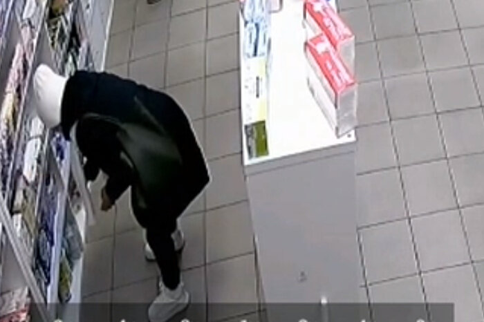 Воровка попала на камеры видеонаблюдения, на которых видно, как она спокойно перекладывает товары с полок к себе в сумку.