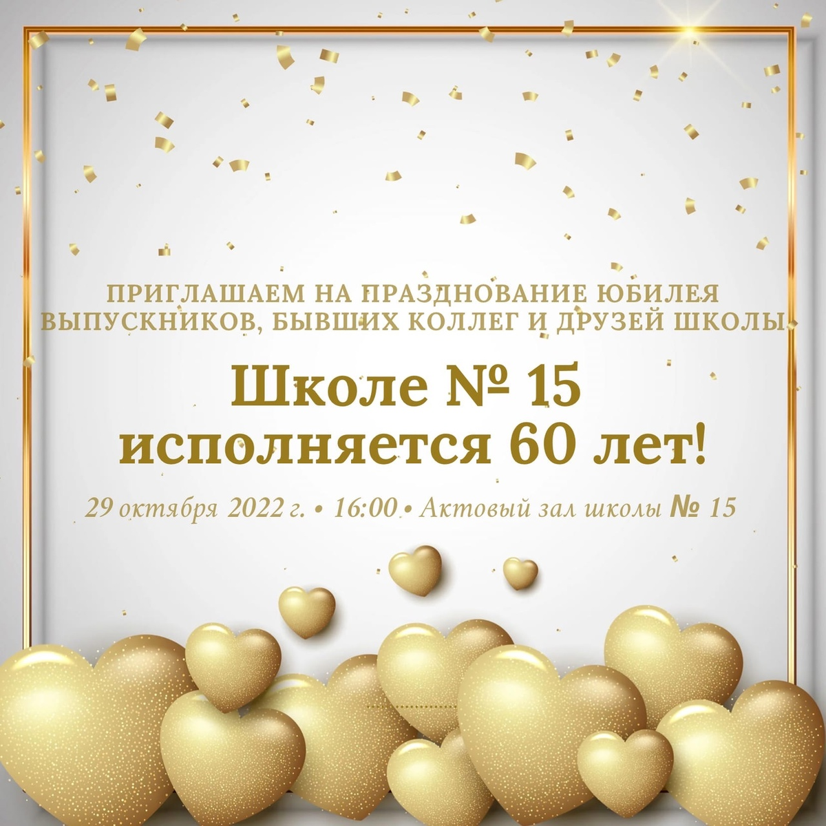 29 октября 2022 года в стенах школы №15 состоится праздничная встреча выпускников, бывших коллег, друзей школы в честь 60-летнего юбилея учебного заведения.