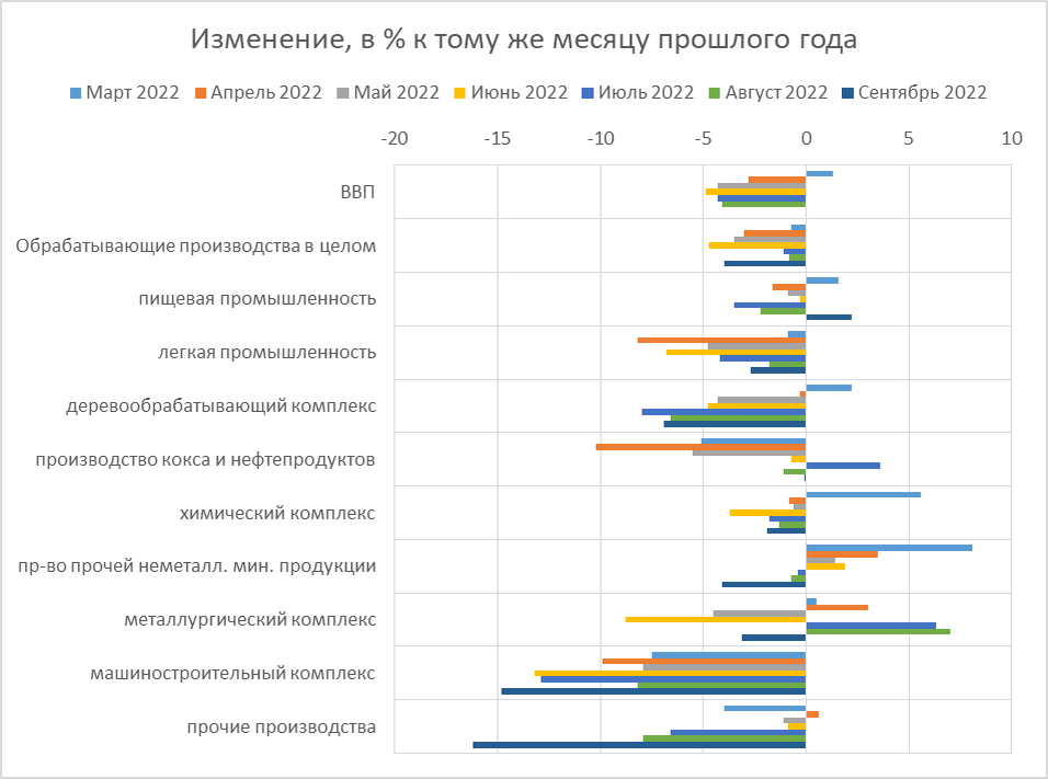 Обрабатывающая промышленность в сентябре по макроотраслям и отдельным товарам