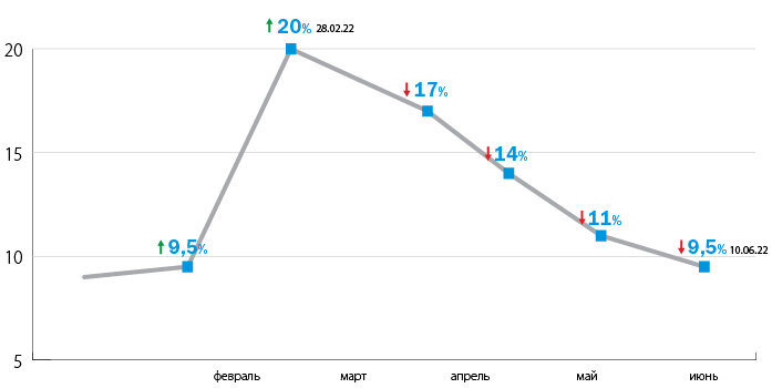 Банк России сегодня сохранил ключевую ставку на уровне 7,5%. Это первое заседание ЦБ по данному вопросу за полгода, после которого показатель остался неизменным. Ставка, напомним, постепенно снижалась с марта 2022 г., после того, как 28 февраля ставку увеличили с 9,5% до 20% на фоне событий после начала военной спецоперации России в Украине. После этого ставка снижалась шесть раз подряд. Также сегодня регулятор ухудшил прогноз по инфляции в стране, до 12-13% годовых, тогда как в сентябре речь шла про 11-13%. Прогноз по инфляции на 2023 – 2014 гг. оставлен без изменения: 5-7% и 4% соответственно. По оценкам Банка России, частичная мобилизация будет сдерживающим фактором для динамики потребительского спроса и инфляции на горизонте ближайших месяцев. Однако в последующем ее эффекты будут проинфляционными за счет усиления ограничений на стороне предложения, — заявил ЦБ. Большинство экспертов накануне заседания регулятора склонялись к мнению, что ЦБ сохранит ставку. Согласно консенсус-прогн