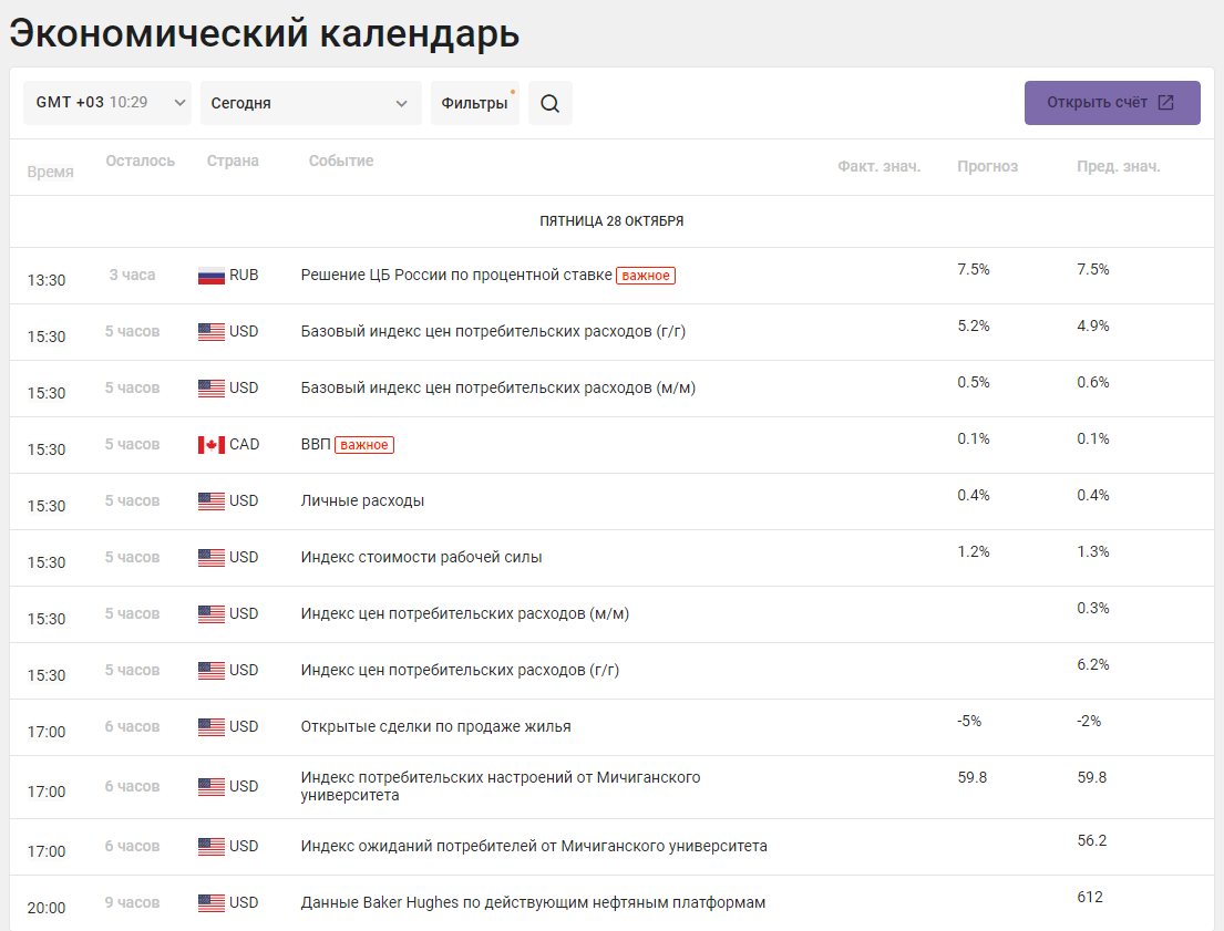 Курс евро немного поднимается к доллару в пятницу утром после падения четверга, следует из данных торгов. По состоянию 9.26 мск курс евро к доллару рос до 0,9968 доллара с уровня прошлого закрытия в 0,9962 доллара, курс доллара к иене - до 146,48 иены со 146,27 иены на закрытии прошлой торговой сессии. А индекс доллара (курс к корзине валют шести стран - торговых партнеров США) снижался на символические 0,05%, до 110,54 пункта. В четверг евро подешевел к доллару на 1,1%, снижение усилилось после публикации итогов заседания Европейского центробанка. Регулятор ожидаемо второй раз подряд повысил ставку на 75 базовых пунктов – до 2% с 1,25%. Курс иены тем временем отреагировал на решение Банка Японии сохранить учетную ставку на отрицательном уровне - минус 0,1%. До публикации решения центробанка иена дорожала к доллару до 146,64 иены, затем перешла к небольшому снижению, а сейчас вновь вернулась к росту. 15:30 МСК Валовый внутренний продукт CAD Валовый внутренний продукт представляет собой