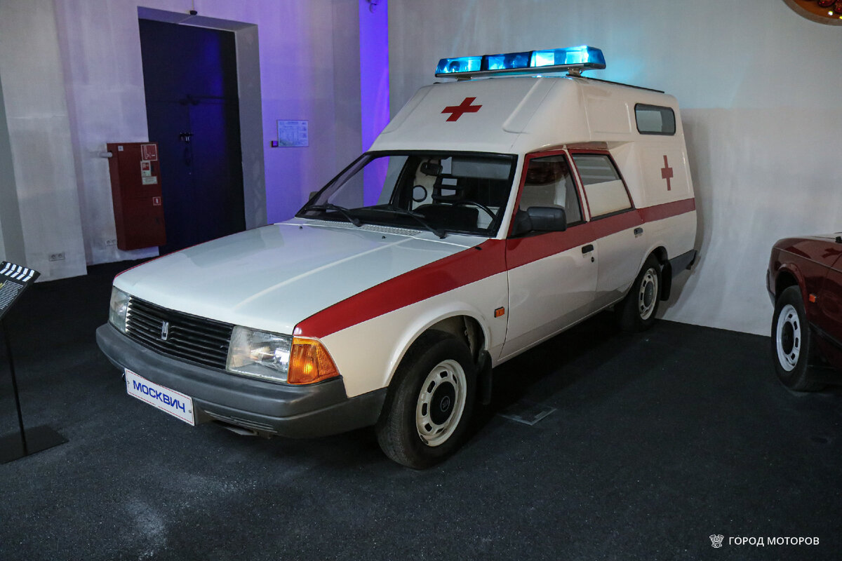 Вот мы с вами добрались до самого последнего зала выставки «Мечта москвича», которая проходила на ВДНХ. Тут представлена современная история завода АЗЛК в виде нескольких прототипов и мелкосерийных моделей семейства 2141. Сегодня поговорим про мелкосерийный фургон Москвич-2901 и в частности про его опытный медицинский вариант. К счастью, уникальный экземпляр сохранился до наших дней в отличном состоянии и освещает тёмный зал светопроблесковыми маячками на крыше. Мелкосерийный выпуск необычного универсала повышенной вместимости начался в 1994 году. Наличие второй цифры 9 в индексе говорит о специальном назначении модели. Это значит, что автомобиль изначально задумывался как спецфургон. А если взять в расчёт ситуацию с нехваткой медицинских автомобилей в то время, то становится понятно, что АЗЛК пытался создать замену РАФам (после распада СССР производство РАФов в Латвии резко сократилось), ведь ГАЗелей в то время ещё толком не было. АЗЛК-2901 разрабатывался и готовился к производству со