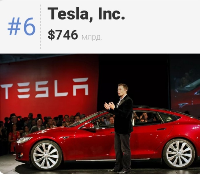 Рейтинг построен по показателю рыночной капитализации. Рассчитывается он посредством умножения количества выпущенных компанией акций на стоимость одной такой акции. Данные в статье по состоянию на 27 июля 2022 года. Это продолжение прошлой статьи. Tesla – крупнейшний в мире производитель электромобилей, который также занимается производством солнечных батарей и аккумуляторов. В конце 2020 года Tesla и ещё 27 американских компаний учредили организацию Zero Emission Transport Association (ZETA), которая будет продвигать переход всего транспорта в США на электрическую тягу. На текущий момент у компании имеется несколько моделей электромобилей, включая седан, кроссовер, родстер и даже большой тягач для грузов. Компания Tesla была основна в 2003 году Мартином Эберхардом и Марком Тарпеннингом, а только в 2004 году Илон Маск стал основным ивестором компании и председателем совета директоров. Хоть Маск и не был основателем стартапа, именно благодаря ему компания добилась таких высот и все