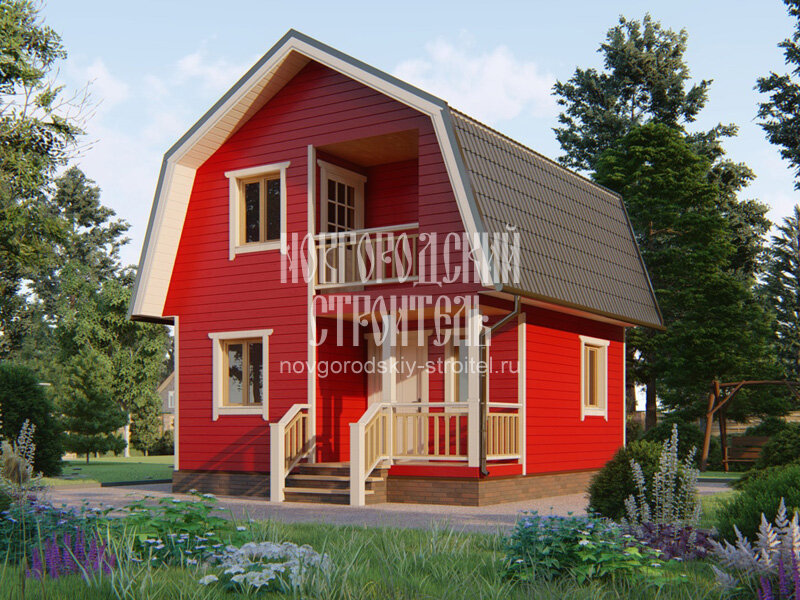 Каркасный домик 6х6 м "Апатиты" с террасой и мансардой