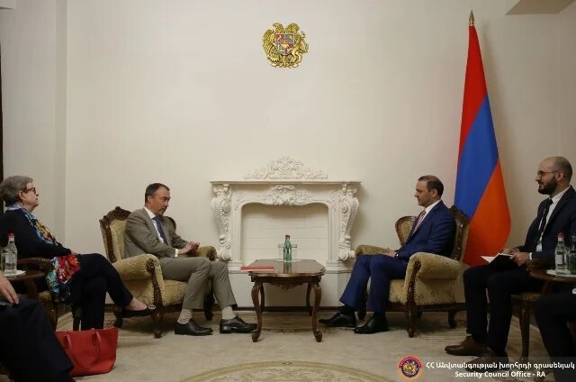 Во встрече участвовала также глава миссии ЕС в Армении, посол Андреа Викторин, сообщили в Совбезе.