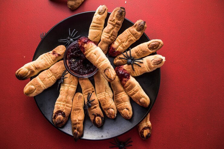 Празднуете Хэллоуин? Тогда эти рецепты для вас! Совместное приготовление страшно интересных блюд вместе с детьми не только является отличным досугом, но и укрепляет семейные отношения. Ваши дети будут в Восторге! Нам понадобится: Масло взбиваем с сахаром, добавляем яйцо, муку и разрыхлитель. Замешиваем тесто и убираем в холодильник на 30 минут. Из охлажденного теста лепим колбаски, придавая им форму пальцев. Лепим ноготь-миндаль на растопленный шоколад и отправляем в разогретую до 180 С градусов духовку. Через 20 минут ведьминские пальцы готовы! Кого тут пощекотать? А теперь полетаем? Нам понадобится: Каждый квадратик сыра порежьте пополам, должно получиться по 2 небольших прямоугольника. На каждом прямоугольнике сделайте 4 надреза вертикально, но не дорезая до конца ~ 1,5-2 см. Уложите сыр на доску, на каждый выложите по соломинке и заверните палочку в сыр. Обвяжите готовую «метлу» зеленым луком, чтобы сыр крепче держался. Нам понадобится: Яблоко нарежьте толстыми ломтиками, сбрызнит