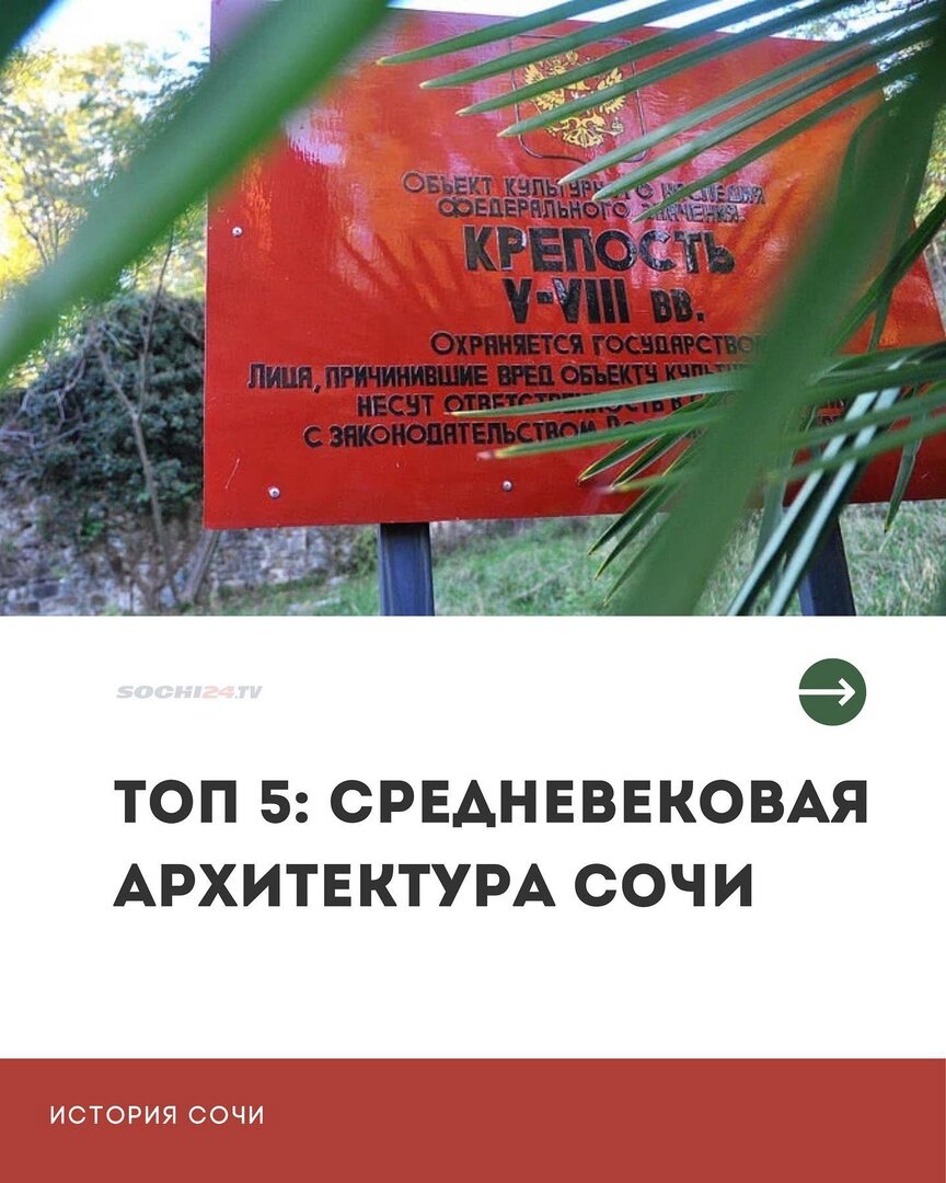 Думаете, что живёте в Сочи давно? Как бы не так! Вот кто здесь действительно давно👇🏻 Черноморское побережье Западного Кавказа видело так много народов, как не всякая земля😍. ⛵️Великие мореплаватели и цивилизации древних греков, римлян, византийцев, генуэзцев строили на территории современного Сочи свои крепости и храмы уже более полутора тысяч лет назад! Мы собрали пять из них, сохранившихся в руинах, но ещё доступных нам с вами. Успевайте увидеть их своими глазами😍. 💒 Византийская церковь в посёлке Лоо, особенно её северная стена. Постройка интересна архитектурным стилем. Предположительно относится X—XII веками. 🏰Крепость Ачипсе памятник архитектуры, ориентировочно построен в VII—X веке. В районе курорта Красная Поляна. Там было найдено много металлических предметов и обломков посуды🏺. Сейчас от неё остались только разрушенные стены и основания башен. 💒Ахштырский храм находится в одноимённом посёлке, напротив рыбного хозяйства, недалеко от Адлера. Был построен в XI—XIII веке,