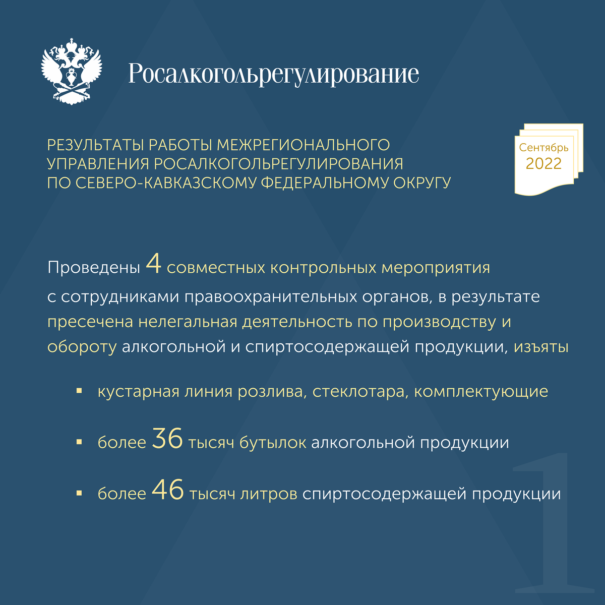 Результаты работы Межрегионального управления Росалкогольрегулирования по Северо-Кавказскому федеральному округу в сентябре