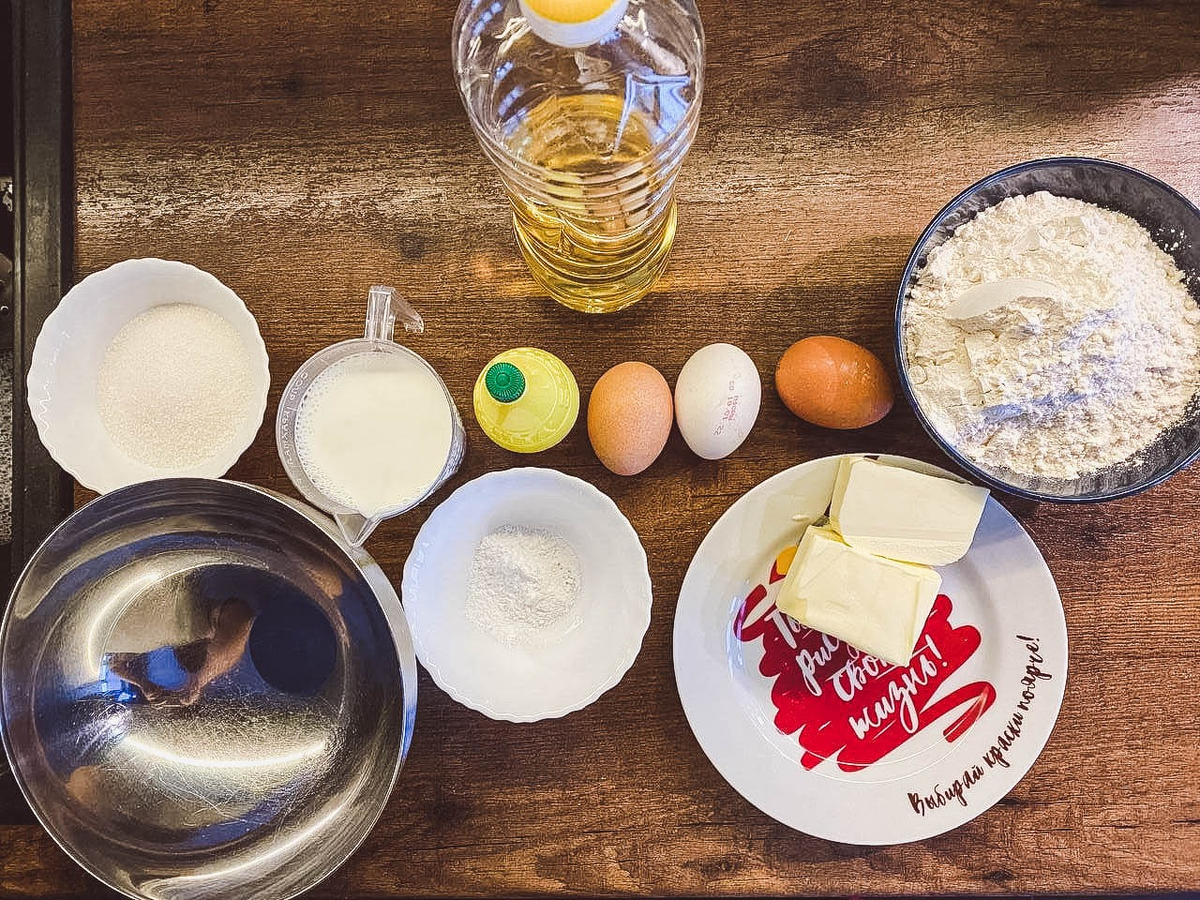 Какой прием пищи считается самым главным? Прааавильно, завтрак. А завтрак должен быть каким? Вкусным, нажористым и красивым. В будний день, порою, появляется опция "быстрый", но, на мой взгляд, по нынешним временам можно не спешить. Ну какая разница: будешь ты строчить в слаку сидя за ноутом или поджаривая ажурные, румяные, ароматные блинчики? Вот и мне кажется, что для слаки разницы никакой=) А раз разницы нет и сегодня мы делаем завтрак выходного дня - запасайся хорошим настроением, став плейлист пободрее и вперед, к кулинарным свершениям! Тебе понадобится: Что с этим делать? Как всегда - херак-херак и в продакшн, ничего сложного. Все таки хочешь подробности? Ок. Хватай ковшик, такой, литра на 2.5, наливай на треть воды и ставь кипятить. Сверху на ковшик ставь металлическую гастроемкость(на фото в левом нижнем углу пример такой миски) а в нее кидай 200 грамм сливочного масла. Эта конструкция называется "водяная баня" - позволяет растопить или размягчить масло и не спалить его к черт
