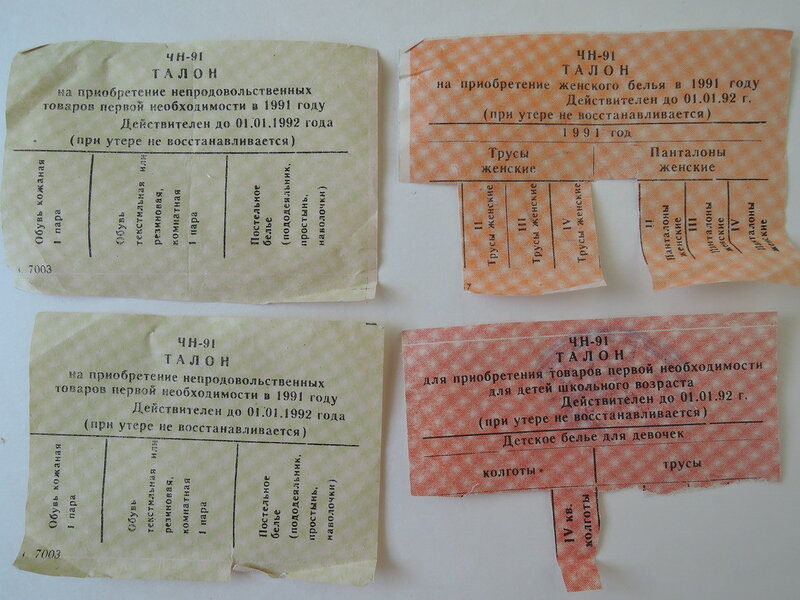 Ну это классика, 1991 год. В 1991 талоны были почти везде и почти на все. Но так было не всегда. Еще в середине 1980х талоны были не везде.