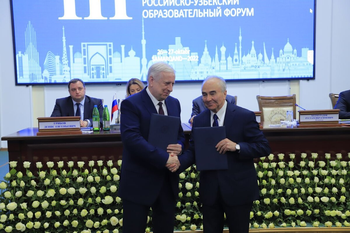 Узбекистан, Ташкент – АН Podrobno.uz. Свыше 20 узбекских и российских вузов подписали соглашения о сотрудничестве в рамках третьего Узбекско-российского образовательного форума, который прошел в Самарканде.