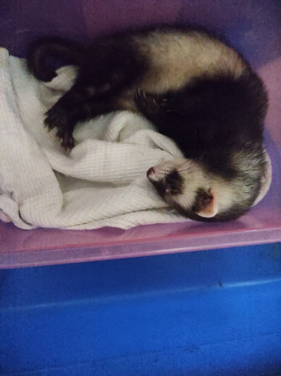 Здравствуйте дорогие подписчики! Сегодня я хочу рассказать о представителе куньих- хорьке. Существует три вида этого животного: американский, лесной и степной. Одомашненный вид носит название фреток и отличаются по окраске меха. Окрас бывает самым разным: соболиный, шоколадный, серебристый, черный белый и даже долматинец. Это очень милые зверьки до 40 см в длину и весом около 2 кг. У подруги моей дочери дома живет ручной хорек Алиса и именно ее фото будут в моей статье. Что едят хорьки: В дикой природе этот хищник охотится на мелких грызунов в основном в ночное время суток. В домашних условиях его можно кормить специально разработанными кормами, фруктами и овощами. Также это может быть свежее мясо птицы, рыба, яйца. Алиса, например любит огурцы, хлебцы и кусочки вареного мяса. Не забывайте о потребности хорька в воде, поэтому необходимо наличие специальной поилки. Если вы все таки решили завести такого питомца необходимо заранее позаботиться о его комфорте. Прежде всего необходимо по