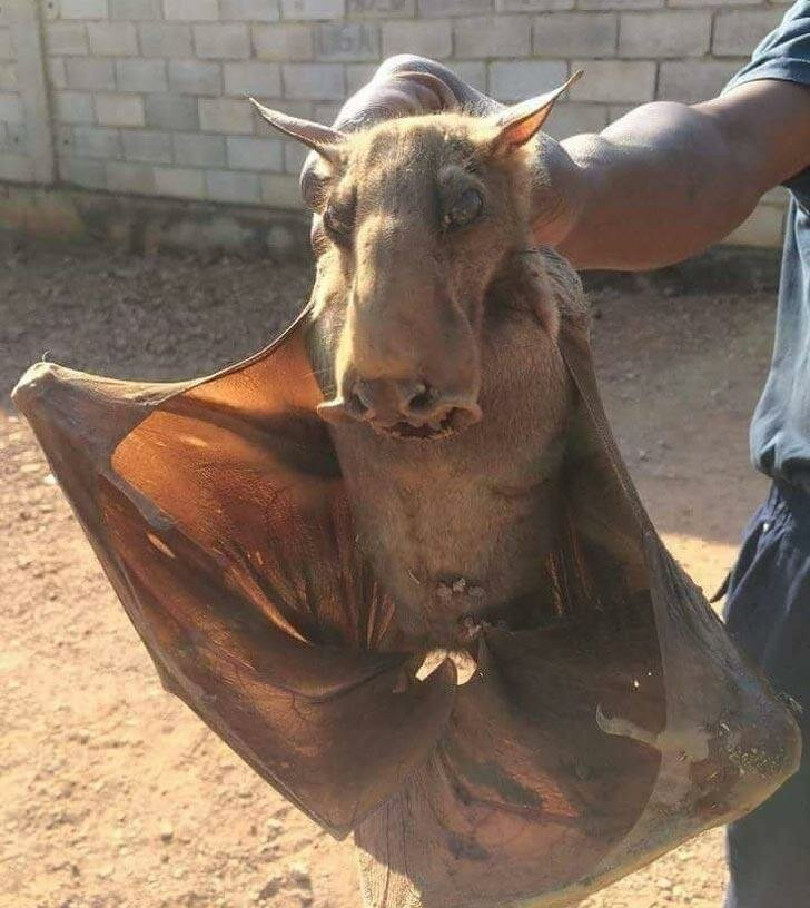 Каких только существ не создает наша природа. Молотоголовый крылан настоящее чудо природы, или она так пошутила над ним, соединив собаку или лошадь с летучей мышью. Молотоголовый крылан один из самых крупных видов семейства рукокрылых. Поселилось это без сомнения странное существо на территории Центральной и Западной Африки, в тропических влажных лесах. Размер тела взрослого самца около 30 сантиметров, а вот размер крыльев впечатляет, в размахе достигает почти метр. Вес такого крылана составляет около 400 грамм. Самки немного меньше, их вес всего 200-300 грамм и выглядят они намного симпатичнее самцов. Крыланы являются ночными животными, и пока их никто не видит, занимаются поиском любимого инжира, бананов, манго и гуайявы. Самцы те ещё привереды и могут пролететь до 10 км за ночь в поисках лучших фруктов. Самки питаются не прихотливо и поближе к дому. Днём крыланы зависают на деревьях вниз головой на высоте достигающей 2 тыс. метров над уровнем моря. Сами же крыланы становятся жертв