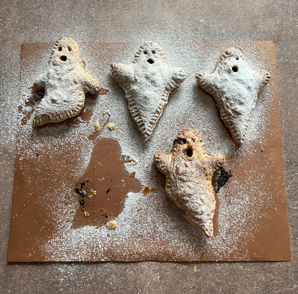 Это очень классный, быстрый и простой рецепт! Зовите гостей и готовьте его вместе )) Будет настоящее веселье! Видео с рецептом посмотрите в моей ленте. Там можно увидеть некоторые подробности приготовления. 🔸 Тесто бездрожевое слоеное - 1 упаковка 🔸 Яблоки зеленые - 450 г 🔸 Слива - 250 г 🔸 Масло сливочное - 50 г 🔸 Сахар - 70 г 🔸 Корица - 1 чл 🔸 Белок яйца для обмазки. 🔸 Сахарная пудра для обсыпки (по желанию) Если ваши фрукты очень сочные и дадут много сока, можете добавить 1 чл крахмала. Мы готовили без крахмала. Сливу можно заменить яблоком, если захотите. 1. Нарежьте фрукты мелким кубиком. Растопите масло и на среднем огне потушите яблоки + сахар около 5 мин. Добавьте сливу + корицу и потушите еще 1 мин. 2. Раскатайте и вырежьте тесто. Сформируйте пирожки, смазывая края белком яйца для склейки и потом обмажьте верх пирожка. 3. Выпекайте в заранее разогретой до 200 градусов духовке около 15 минут. Ориентируйтесь на цвет теста. Желаю вам круто провести время! Печь привиденек