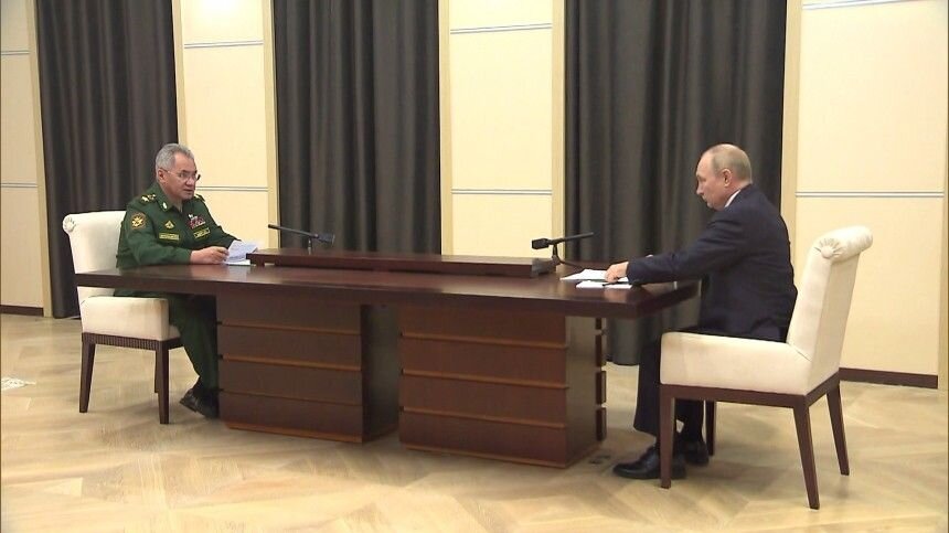 Глава оборонного ведомства доложил верховному главнокомандующему о ходе частичной мобилизации. Фото: Владимир Путин проводит встречу с министром обороны Сергеем Шойгу. Глава оборонного ведомства доложил верховному главнокомандующему о ходе частичной мобилизации. Шойгу отметил, что на начальном этапе наблюдались проблемы со снабжением мобилизованных, однако к настоящему времени они все устранены. В рамках частичной мобилизации из органов исполнительной власти призваны 1300 человек. Средний возраст призванных — 35 лет. После проведения необходимых процедур и обучения к настоящему времени в район проведения специальной военной операции (СВО) направлены 82 000 мобилизованных. Частичную мобилизацию, как отметил Шойгу, можно считать законченной. Требуемое число мобилизованных — 300 000 человек — набрано. Теперь военкоматы продолжат набор в СВО только за счет добровольцев и контрактников.