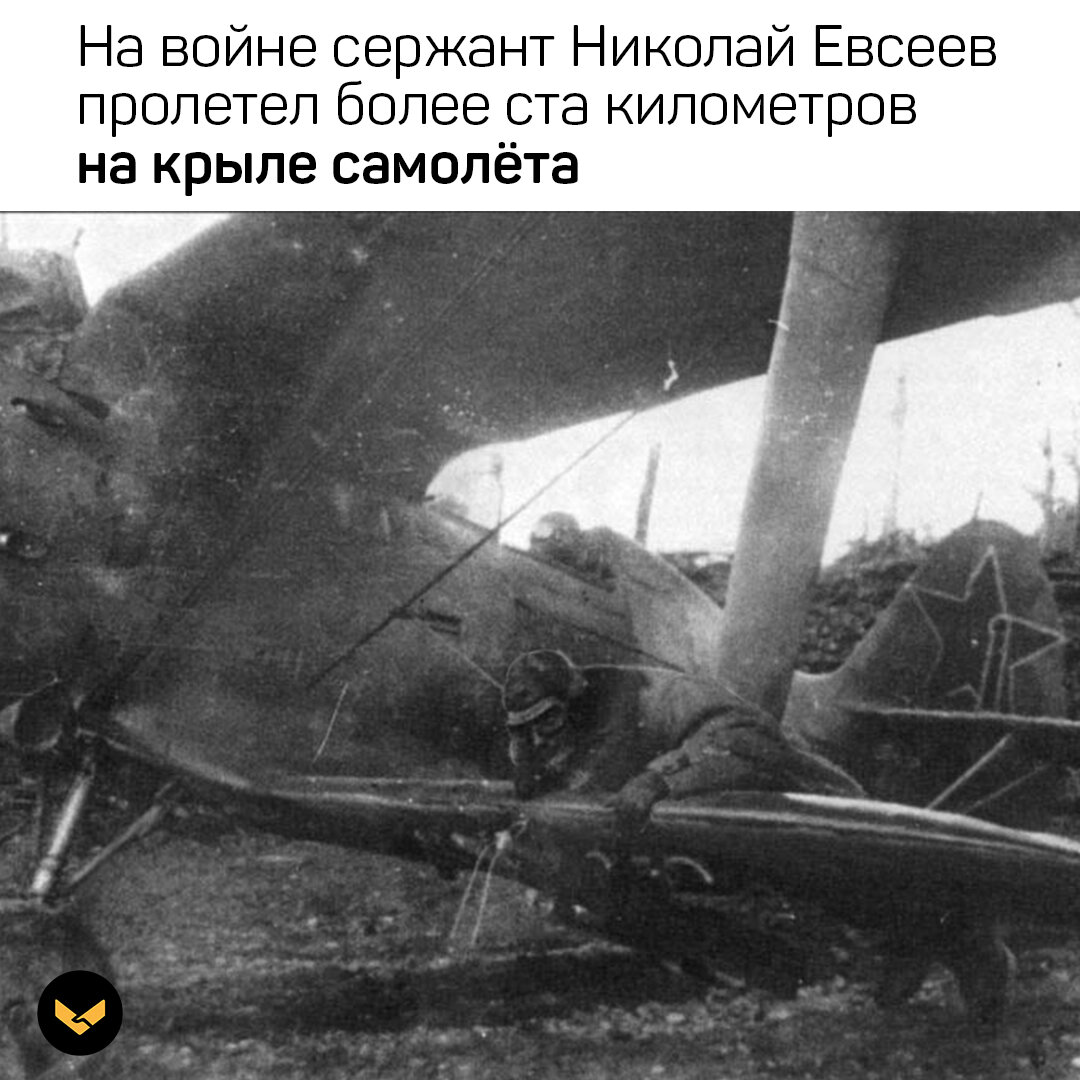 Командир приказал сержанту лечь на левую плоскость своего самолёта, зажать под мышкой стойку полукоробки и обеими руками держаться за переднюю кромку крыла. А потом поднял самолёт в воздух! С Евсеевым на крыле он пролетел более ста километров и благополучно приземлился на своем аэродроме.