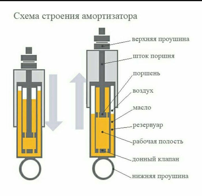 Для чего нужен автомобильный амортизатор? Основная задача автомобильного амортизатора – гасить вертикальные колебания. Кроме того, нельзя забывать и о влиянии амортизаторов на разгонную и тормозную динамику автомобиля. Так, при разгоне автомобиль «приседает» назад, нагружая задние и разгружая передние колеса, снижая тем самым их сцепление с дорогой. При торможении наблюдается обратная картина. Основная нагрузка ложится на передние колеса, а задние лишь слегка притормаживают. И в той и в другой ситуации идеальным было бы состояние, при котором автомобиль сохранял бы свое нормальное «горизонтальное» положение. Примерно та же картина и при маневрировании, но здесь нагрузка смещается не по осям, а по сторонам автомобиля. Какие бывают амортизаторы? Наиболее распространены амортизаторы двух видов – гидравлические и газогидравлические (часто их называют газонаполненными или просто газовыми). В гидравлических амортизаторах гашение колебаний упругих элементов подвески происходит просто за счет