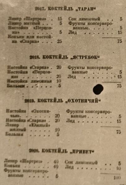 Пятничное. Папа показал мне рецепты коктейлей моего дедушки брежневских времён. Рассказываю, что пила научная интеллигенция Советского Союза. Ниже несколько рецептов (будем считать, что граммы и миллилитры в данном контексте условно равны), которые мне больше всего понравились. В карусели картинок можно посмотреть больше. "Чинзано-флип" (сейчас редко где встречаю флип-коктейли) "Виски-нарзан" (наверное, позже "Байкал" вытеснил нарзан) "Пицунда" (в шейкере) "Золотая осень" "Шампанский" "Черноморский" Отдельно интересны некоторые цены (за бутылку): Судя по нумерации, рецептов всевозможных коктейлей советскому человеку было доступно минимум две с половиной тысячи. Расскажите в комментариях о своих впечатлениях, если попробуете сделать какие-то из них.