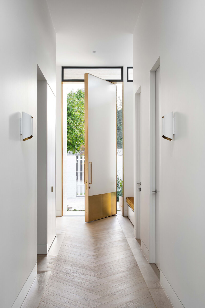 Расположенный вокруг внутреннего двора, дом создает открытое и хорошо освещенное ядро, расширяя доступ к природным элементам. Выраженная чистыми линиями и обволакивающим светом, форма дома погружена в тщательно продуманный ландшафт среди брусчатки землистых тонов и текстурированных формованных поверхностей. Приглашая посетителей, вход отмечен деревянным проемом, вырезанным в общей массе. Оказавшись внутри, комнаты располагаются вокруг центрального внутреннего двора, чтобы увеличить доступ как к естественному свету, так и к ландшафту. Центральное пространство также усиливает ощущение укрытия и защиты от непогоды. В основном холодная палитра приглушенных белых и бежевых тонов создает ощущение согласованности, в то время как древесина добавляет текстуру, а камень обеспечивает постоянную актуальность. Это дом сочетает в себе формальные принципы европейского палаццо с современным австралийским домом. Общим для обоих является любовь к природе и легкость перехода между внутренним и внешним ми