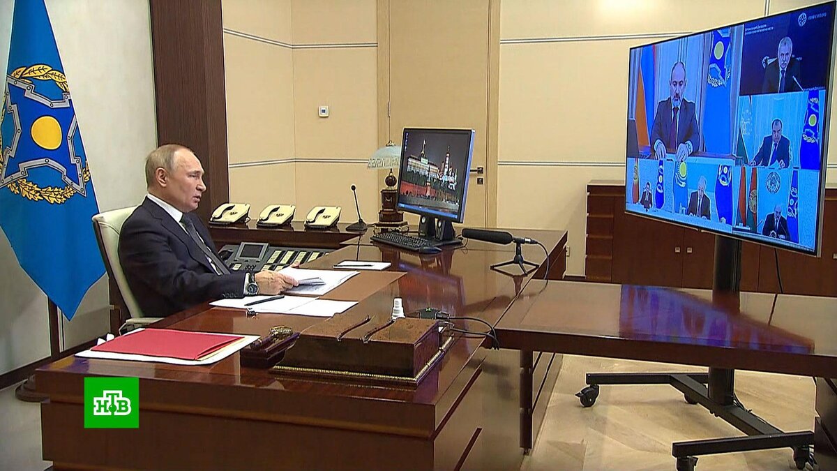 [ Смотреть видео на сайте НТВ ] Владимир Путин сегодня принял участие во внеочередной сессии Совета коллективной безопасности ОДКБ. Внеочередную встречу Совета коллективной безопасности ОДКБ инициировал Ереван, чтобы обсудить последствия сентябрьского обострения на армяно-азербайджанской границе. Владимир Путин принял участие во встрече, которая большую часть встречи проходила в закрытом формате. Во вступительном слове российский президент отметил, что единственно возможный и реалистичный путь к миру между Ереваном и Баку — это неукоснительное соблюдение договоренностей лидеров России, Армении и Азербайджана. Владимир Путин, президент РФ: «Именно за счет последовательного выполнения этих договоренностей на путях делимитации армяно-азербайджанской границы, разблокирования транспортных коммуникаций, решения гуманитарных вопросов можно добиться устойчивой нормализации отношений Армении с Азербайджаном. Мы и с премьер-министром Армении об этом много раз говорили. Я так понимаю, что наш кол