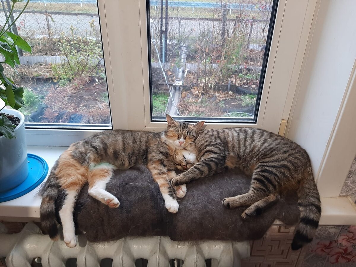 Когда утром идем в сад и нам постоянно на пути встречаются две хорошенькие кошечки и между прочим ухоженные, мне их так хочется забрать домой🤗. Но ведь это тоже чьи-то четвероногие друзья.