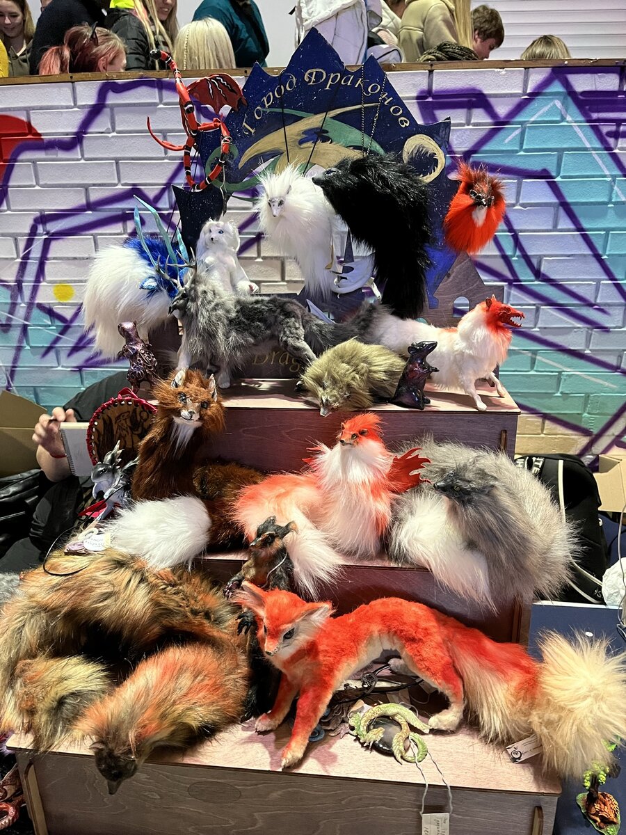 В минувшие выходные старшенькая вытащила меня на фестиваль лисичек. Ради этого мероприятия она готова была раньше вернуться из отпуска. Скажу честно, я шла только ради того, чтобы она улыбалась. Она ведь еще и приговаривала, что если мы пойдем, то она будет самым счастливым человеком на свете. Маленький манипулятор! ))) Я рассчитывала увидеть там нескольких живых лисичек и пару костюмов ростовых кукол. Больше ничего не ждала, так как вообще не понимала, что это за тусовка. Первое впечатление от входа – какая-то толкучка и хаотичное движение толпы. Лисички были, но разбросало их по всему длинному и узкому павильону, да еще и через желающих погладить их не пробиться. Прилавки с сувенирами, много изделий ручной работы за космические деньги. Уши лисы на ободке (то, что мы с ребенком сделаем дома за 20 минут и с минимальным количеством материалов) – от 2 000р. Если вкратце: 25 лисичек, 1 удав, 1 филин, 2 хорька, несколько классных фурсьютов и толпа странных личностей. Моя дочь тоже пытается