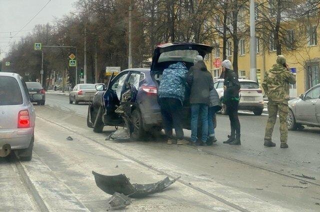 В Новосибирске на трамвайных путях перед ледовым дворцом столкнулись три автомобиля. Подписчики группы «АСТ-54» во «ВКонтакте» сообщили о столкновении трех машин в субботу, 29 октября, на трамвайных путях перед ледовым дворцом на улице Богдана Хмельницкого. Возле дома №22 на улице Богдана Хмельницкого столкнулись Nissan Quashqai, Opel Astra и Nissan Sunny. Сильный удар Astra в бок кроссовера вызвал у Quashqai срабатывание сразу всех подушек безопасности. Второй Nissan получил повреждения передней части. В результате аварии затруднён проезд транспорта и трамваев. При этом, ситуацию осложняет то, что к ЛДС сейчас стягиваются люди на матч «Сибири». ГИБДД отмечает, что в ДТП нет пострадавших. Ранее Сиб.фм сообщал о массовом ДТП с двумя пострадавшими.