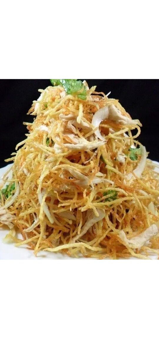 Впереди Новый год - один из любимых и долгожданных праздников в каждой семье. И хотя еще остается время, многие хозяйки уже сейчас думают, что приготовить на новогодний стол. Сегодня хотелось бы поделиться одним из рецептов вкусного салатика под названием "Муравьиная горка". Ингредиенты: -картофель(2шт. крупных) -яйцо(3 шт.) -копченая куриная грудка(200 гр.) -огурец свежий(средний 1 шт.) -сыр твердый(50 гр.) -чеснок(1зубчик) -майонез(100 гр.) Картофель чистим и шинкуем на терке для моркови по-корейски.Затем хорошо его промываем в дуршлаге,чтобы смыть большую часть крахмала. Просушиваем на салфетке и обжариваем в большом количестве масла до готовности, постоянно перемешивая лопаткой. Готовую картофельную соломку выкладываем на бумажное полотенце, чтобы лишнее масло стекло. Яйца взбиваем венчиком. Добавляем соль,черный перец и немного молока. Разогретую сковороду смазываем растительным маслом, выливаем яичную смесь и обжариваем с двух сторон блинчики. Нарезаем соломко