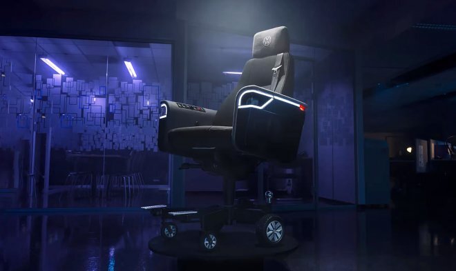 Автомобильные компании активно ищут способы применения на практике своих наработок и технологий. Например, в Volkswagen решили попробовать силы в мебельной индустрии. Их новый продукт – офисное кресло, получившее несколько автомобильных атрибутов и черт. Прежде всего, оно имеет колеса и способно перемещаться за счет электродвигателя и батареи со скоростью до 20 км/ч, а запас хода достигает внушительных (для офиса) 12 километров. Как и в автомобилях марки, для движения задним ходом и маневрирования предусмотрена система камер заднего вида и чувствительные 360-градусные датчики, реагирующие на приближение. А немного развлечь себя и окружающих можно, включив любимый трек в штатной мультимедийной системе. И, конечно, торопясь на перерыв, можно попросить «уступить дорогу» с помощью клаксона. Кресло оснащено фарами, спрятанными в подлокотниках, и красочной RGB-подсветкой. А понижение температуры в офисе может компенсировать автономный обогреватель. Офисное транспортное средство оснащено и от