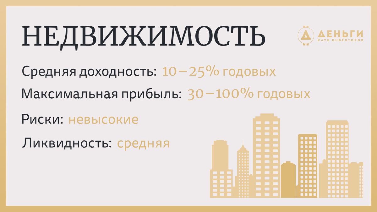 Средняя доходность по рынку недвижимости — 10–25% годовых.