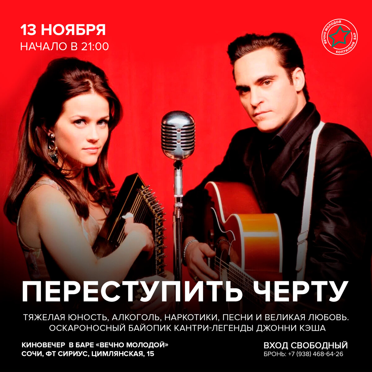 В это воскресенье, 13 ноября смотрим художественно-биографический фильм «Переступить черту». Картина о жизни звезды кантри Джонни Кэша и его отношениях с Джун Картер.