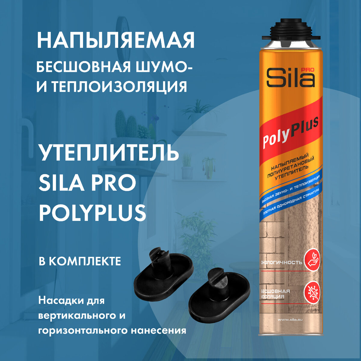 Sila PRO PolyPlus - эффективный утеплитель с минимальной плотностью, наименьшей теплопроводностью, низкими показателями влагопоглощения и паропроницаемости, способный надежно защитить от шума и проникновения холода. Используйте Sila PRO PolyPlus в комплексе с минеральной ватой, XPS, PIR или самостоятельно для утепления небольших помещений и геометрически сложных поверхностей с отрицательным наклоном, а также труднодоступных мест, где технологически тяжело применять листовые утеплители. Sila PRO PolyPlus подойдет для утепления труб и инженерных коммуникаций, ёмкостей, гаражей, кровли, лоджий и балконов, изоляции бассейнов и фургонов, утепления пола теплиц, фундамента, цоколя, подвала. Sila PRO Polyplus – сильное решение для утепления! Специальные условия на оптовые поставки напыляемого утеплителя Sila PRO Polyplus только для партнеров компании СтройСистема.