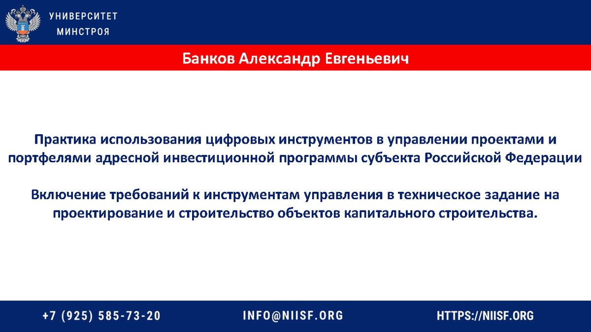 Вебинар "Практика применения цифровых инструментов в управлении проектами и портфелями адресной инвестиционной программы субъекта Российской Федерации. Включение требований к инструментам управления в техническое задание на проектирование и строительство объект"