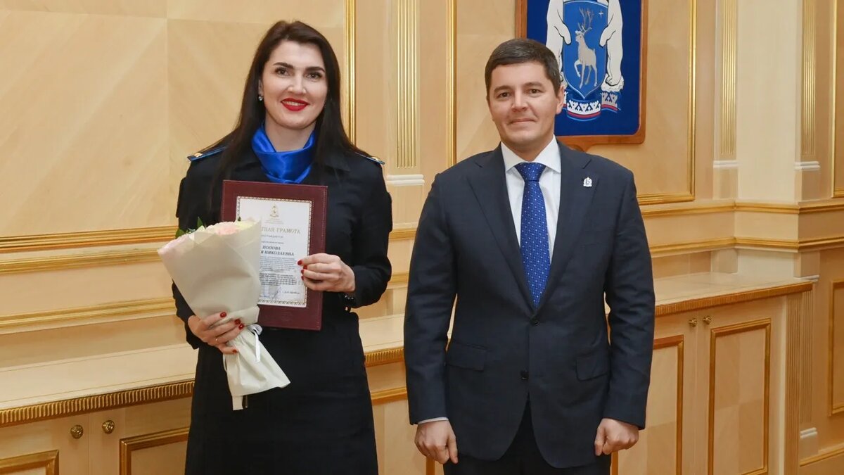 Сегодня, 10 ноября, сотрудники органов внутренних дел ЯНАО отмечают профессиональный праздник. Второй повод для почестей — 35-летие со дня основания окружного управления МВД России по ЯНАО. Поздравления и награды служители правопорядка получили от губернатора Дмитрия Артюхова. Полковнику полиции Сергею Алексееву распоряжением губернатора присвоено звание «Заслуженный юрист ЯНАО». Медали «За вклад в развитие Ямала» вручены сотруднику лабытнангского ОМВД России Александру Жабкину, полковнику юстиции в отставке Василию Ионину и майору полиции в отставке Юрию Николаеву. Подполковник полиции Максим Собянин награжден медалью «За доблестную службу». Грамотами губернатора ЯНАО отмечены несколько человек. Особые слова благодарности ветеранам, которые стояли у истоков и создавали основу правопорядка на Ямале и выстроили все на очень высоком уровне. Мы видим достойные результаты и текущей работы — это не только сухие цифры статистики, но и конкретные случаи проявления героизма и полной приверженн