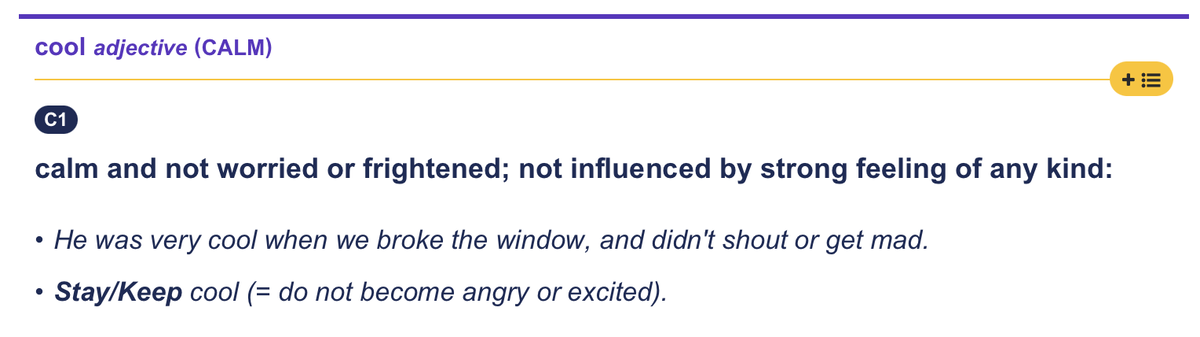 Cool - это не только "прохладный" и "крутой". В разговорной речи это прилагательное часто используется в других значениях. Сегодня, мои любимые подписчики, я постараюсь просто и ясно объяснить когда и в каких выражениях использовать это слово. Приятного чтения. Stay cool, play it cool, keep cool сохранять спокойствие, держать себя в руках Если вы говорите, что человек или его поведение cool, вы имеете в виду, что он спокоен, не поддается сильным эмоциям, не устраивает истерику, особенно в сложной ситуации. А попсовая фраза "Stay cool" - это не оставайся крутым, а что-то вроде продолжай не поддаваться сильным эмоциям, не качайся на эмоциональных качелях. Как-то так. Спасибо, что потратили свое время на чтение моей статьи. Надеюсь она принесла вам пользу. Желаю вам хорошего настроения и успехов в изучении английского. Заходите ко мне в гости на YouTube ❤️ https://www.youtube.com/c/englishspot