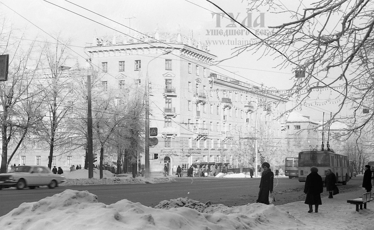 Еще исторические фотографии Тулы от проекта "Тула ушедшего века". На этот раз от декабря 1988 года. Фотографии сделаны Эдуардом Маршаловым. На снимках главная артерия города - проспект Ленина. Для мен эти снимки интересны тем, что это уже Тула, которая я застал. В 1988 году я еще не жил в городе, а наслаждался видами Моравской Силезии, но летом после перерыва в несколько лет мы ездили в "отпуск", в основном мы были в городе Пущино Московской области, но раз-два в течение примерно месяца на несколько дней приезжали в Тулу. Именно летом 1988 года я впервые увидел в Туле чешские трамваи Т-3М (Т-6В5) и даже прокатился на них. Разумеется, через проспект Ленина я и проезжал, да и не мог не бывать на нем в дни, когда гостил в Туле. От моих воспоминаний перейдем к фотографиям. 1. Проспект Ленина в районе ул. Первомайской. На противоположной стороне через дорогу располагался магазин "Нива", который виден на снимке. Кроме того, можно обратить на окружающий антураж - светофоры, лавочки на оста