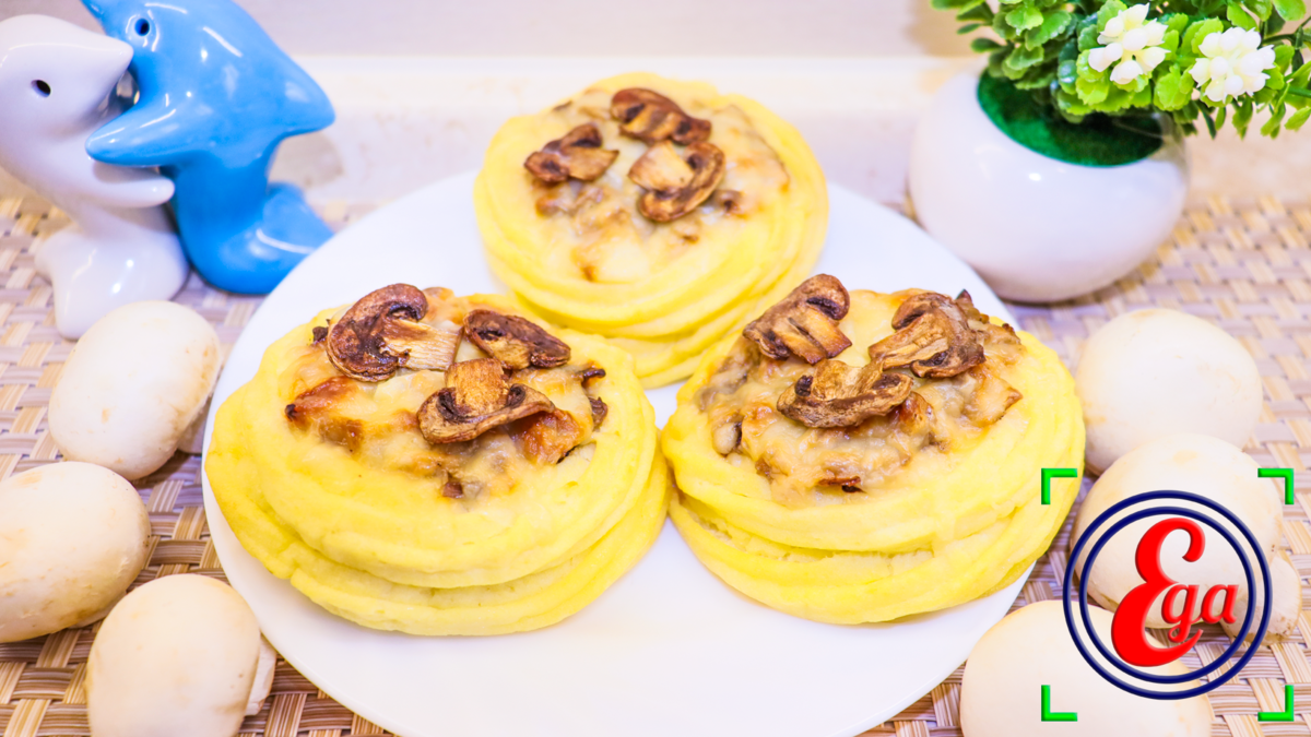 Картофельные «гнезда» с грибами, запеченные в духовке под сыром