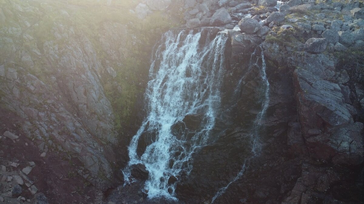 Главный териберский водопад берет начало в Малом Батарейском озере и впадает в Баренцево море. Небольшой ручей отделяется от водоема и несется по каменным уступам. Срывается поток с большой высоты, разбиваясь о камни. Его мощь может быть разной в зависимости от того, насколько сильно наполнено Батарейское озеро. В некоторые месяцы водопад полноводный и бурный, а в другие – спокойный и тихий. На то, что иногда поток очень мощный, указывает наличие ущелья. За многие годы вода размыла породы, образовав довольно большой и глубокий каньон.
