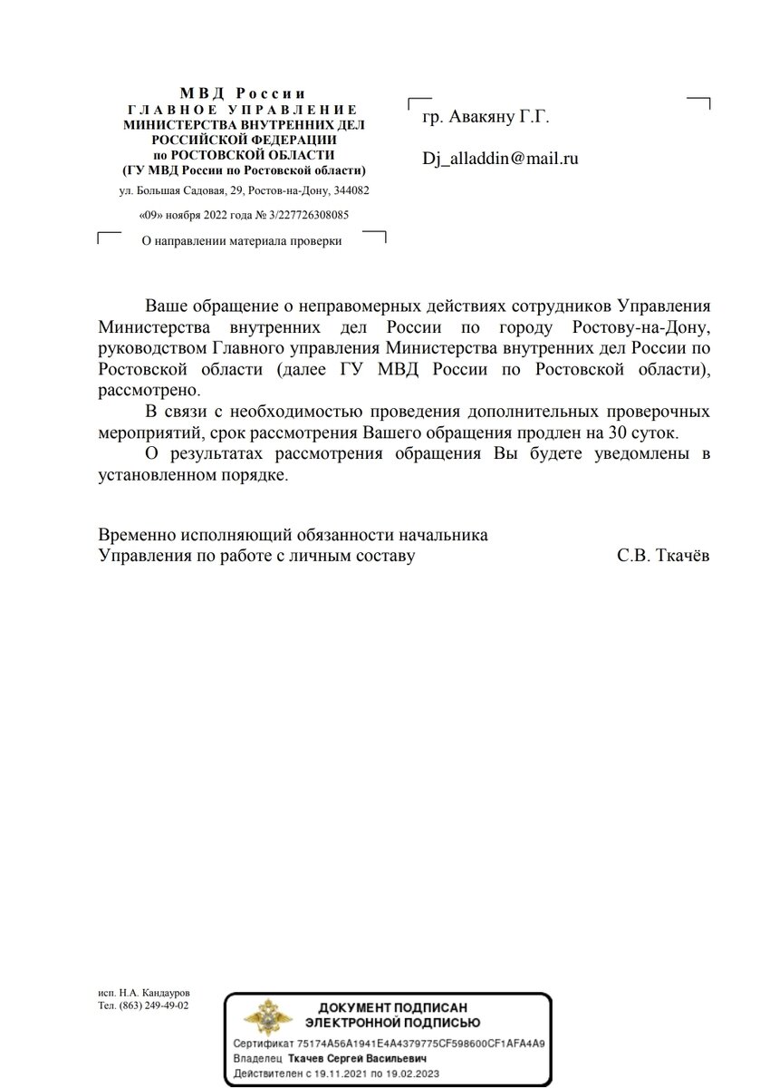 ГУМВД России по Ростовской области продолжает присылать отписки, якобы месяца им не хватило провести проверку по факту применения физической силы начальником полиции отдела №4 Шаповаловым Дмитрием Николаевичем который 05.10.2022 года применил физическую силу боевой прием залом руки за спину, а все из за того что он не хотел чтоб его фиксировали на камеру, а то что ФЗ о полиции №3 ст 8 и конституция РФ позволяет нам производить фото и видеофиксацию в общественном месте службы сотрудников полиции ,Шаповалова это не волнует. Знаете зачем срок был продлен и якобы разбирательство идет? Потому что по тревоге были подняты все структуры и надо спасать начальника во чтобы это не стало , Ростовский областной суд уже на готове оставить все без изменений но хотя я даже не знаю как это может произойти , рапорта лживые против достоверной видеозаписи происходящего , как это обыграть , узнаем 06.12.2022