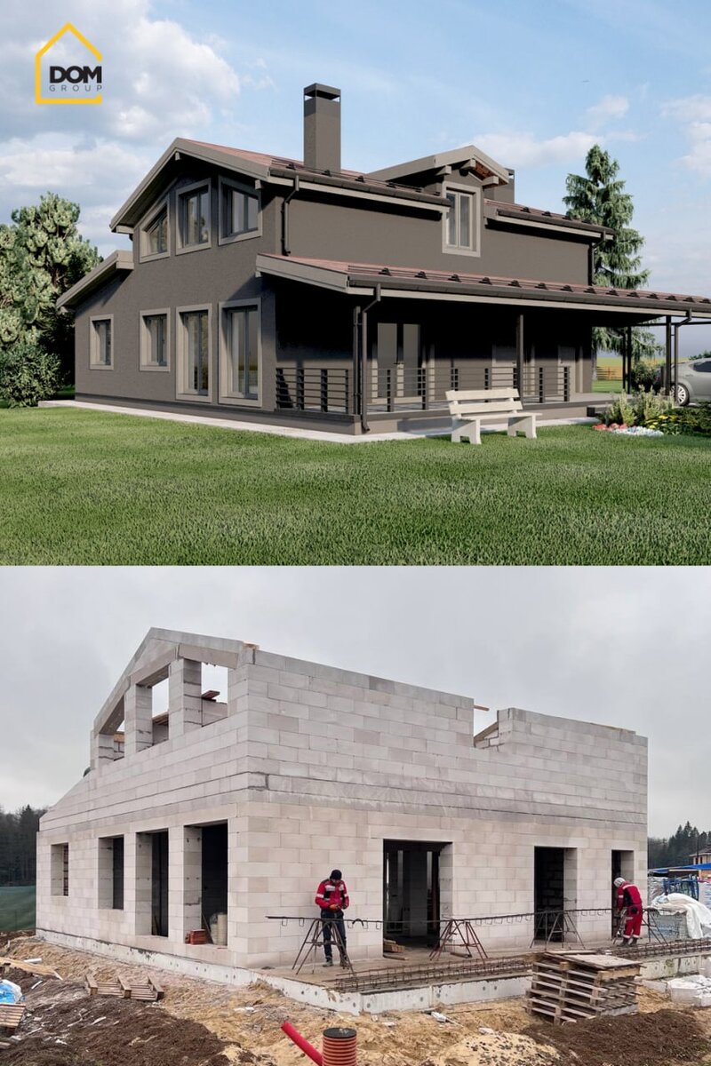 Процесс строительства 2-ух этажного мансардного дома площадью 240 м2. К такому результату пришла наша бригада за 2 месяца.