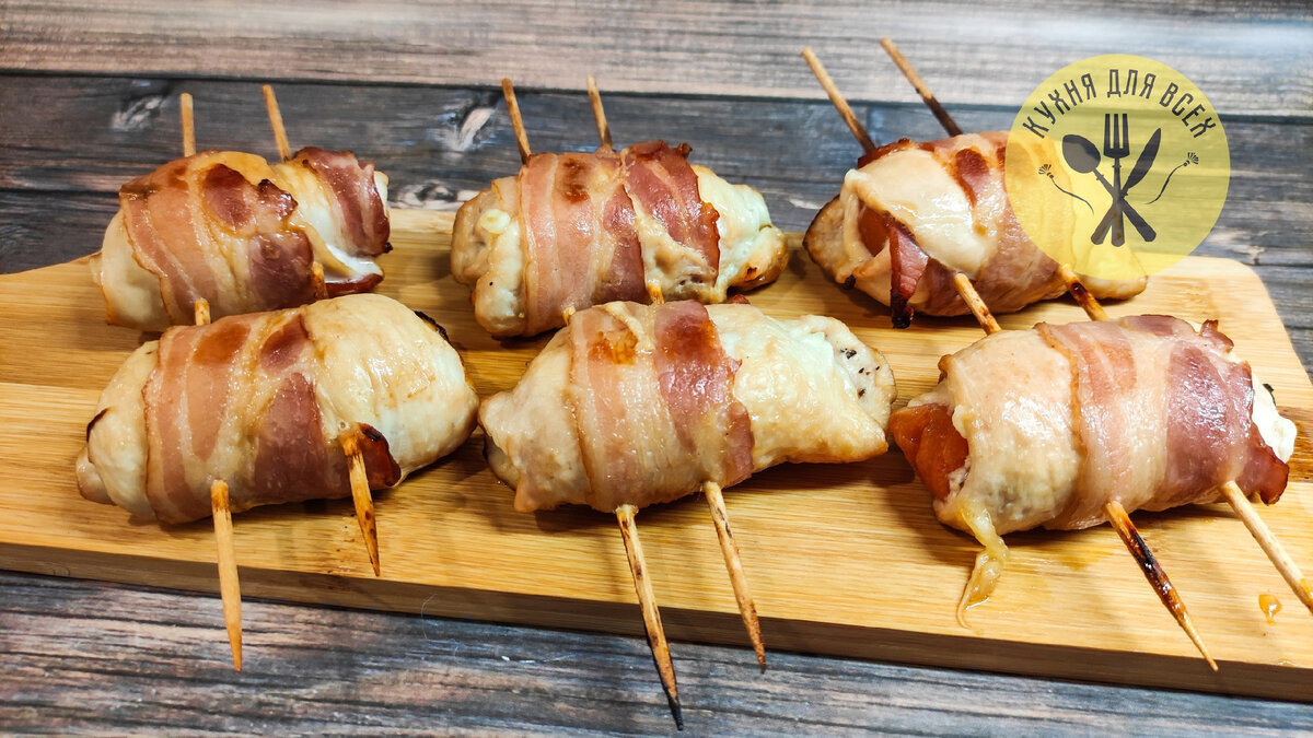 Теперь шашлыки будете готовить в духовке: куриные шашлычки на шпажках с беконом