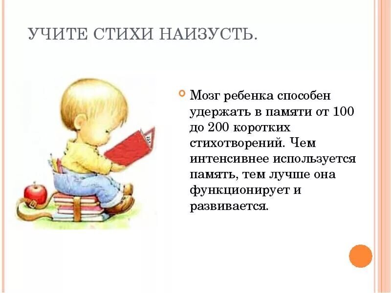 Кому-то достаточно прочитать стихотворение 4-5 раз, чтобы его запомнить, а для кого-то процесс заучивания – это тяжкий труд. Что делать? Один из самых элементарных методов выучить стих – это читать его вслух. Причем делать это нужно не один раз, а два, три, четыре. Сначала просто прочитайте текст стихотворения, потом добавьте интонацию и паузы, дальше уловите его ритм и тональность. Особенно этот метод хорошо работает с теми, у кого очень развита аудиальная память. Есть и те, у кого лучше работает зрительная память. Тогда лучше стих записать. Самый простой метод заучивания-разбивка стиха. Можно учить по две строчки. Прочитали несколько раз, запомнили и продвигается к следующим двум строкам. Затем несколько раз повторяем выученное четверостишие. Затем прибавляем ещё 2 строки и затем снова повторяем всё вместе. Если какие то слова из строки непонятны или плохо запоминаются, то повторяем их ещё несколько раз отдельно и потом всё вместе. Если слова совсем не хотят запоминаться, то можно п