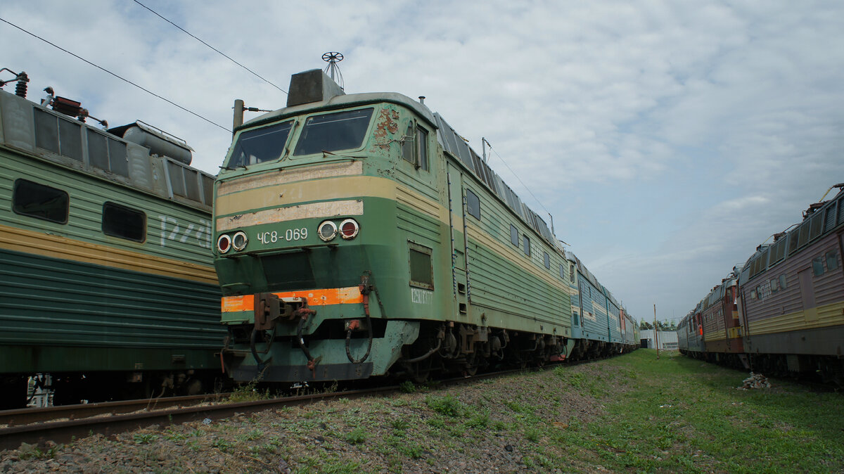 Среди восьмёрок здесь стоят не менее красивые чс7 в окрасе ТЧ-1 "Молния"