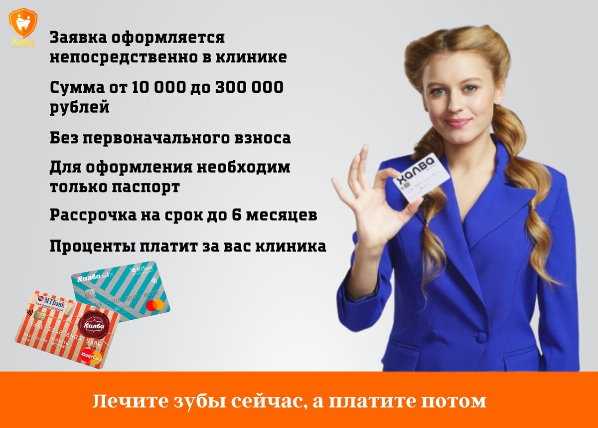 Рассрочка по карте халва: - заявка оформляется непосредственно в клинике.